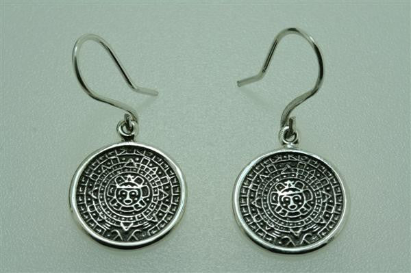 Mayan Calendar Disk of Sun Mayan Earrings Sterling Silver Mayan