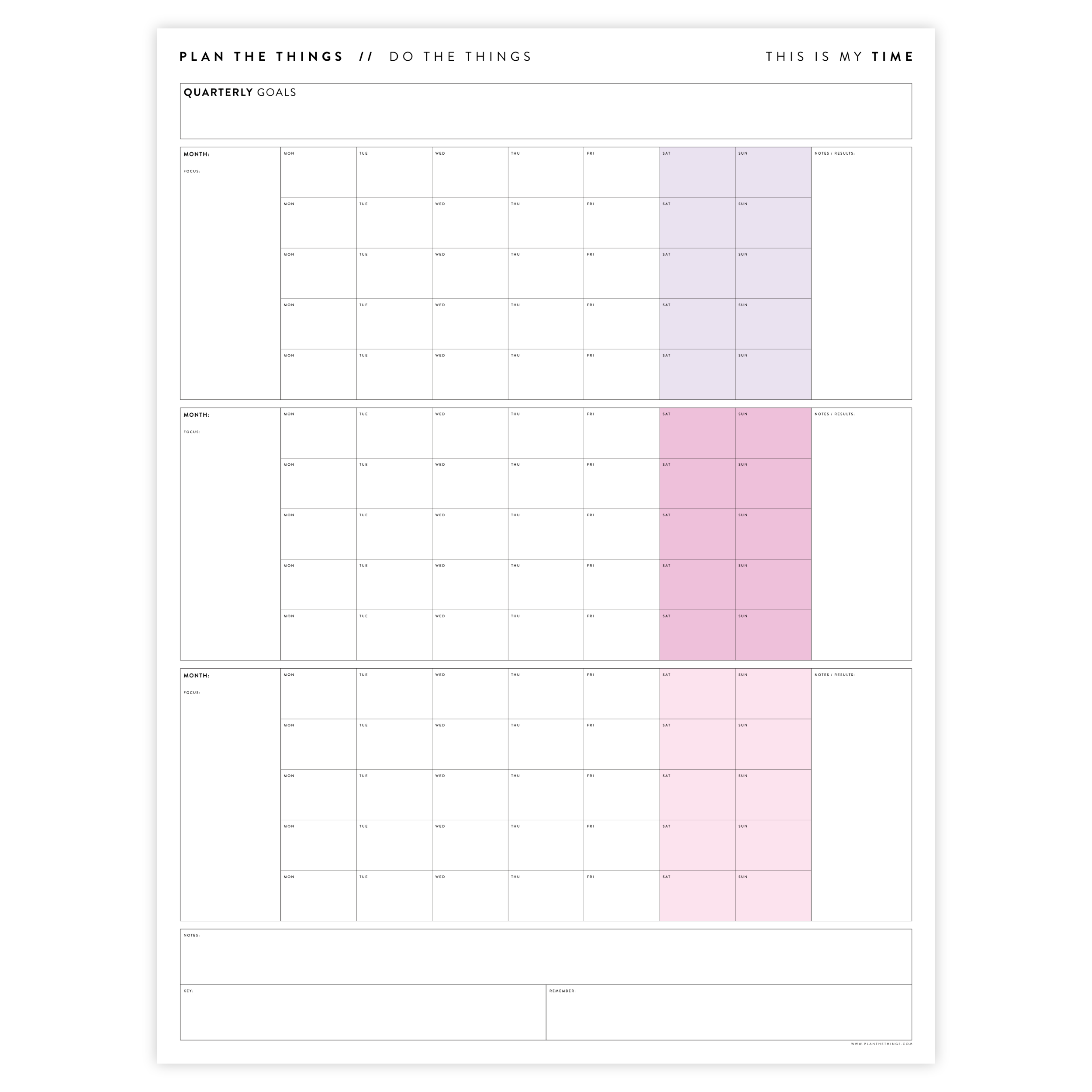 PRINTABLE UNDATED QUARTERLY WALL CALENDAR BUNDLE MONDAY START